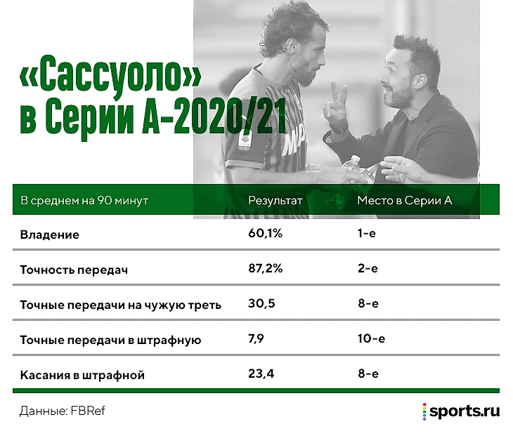 Структура «Сассуоло» дает максимальный контроль. В этом плане команда лучшая в Италии (но с созданием моментов есть проблемы)