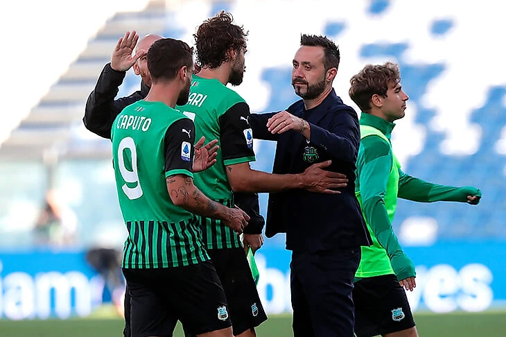 «Сассуоло» после восьми туров идет вторым в чемпионате Италии, и в недавнем интервью La Repubblica тренера команды Роберто Де Дзерби спросили о целях на сезон. «В прошлом чемпионате мы стали восьмыми. Теперь хотим попасть в еврокубки, – ответил тренер. – «Сассуоло» прогрессирует, но нужно, чтобы кто-то из топов провалил сезон, потому что они сильнее».