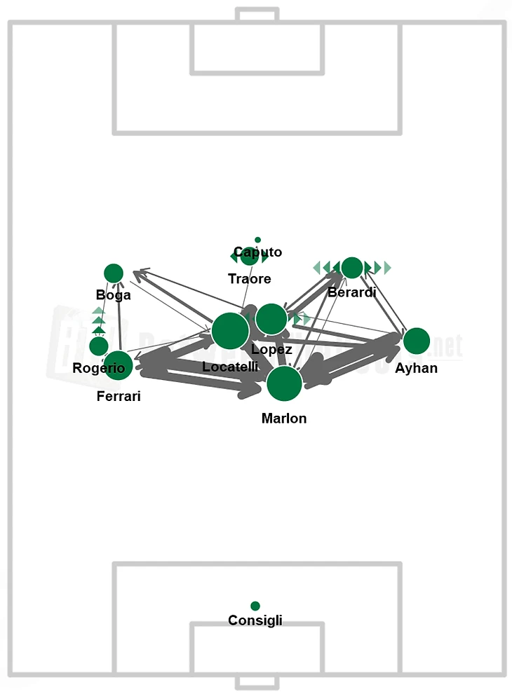 В атаке «Сассуоло» зависит от нестандартных ходов. В этом плане выделяются Локателли и Берарди
