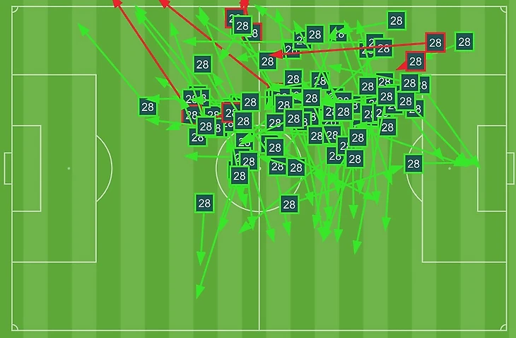 Мингеса принимал активное участие в организации атак, порой он был ключевым игроком. Особенно в эпизоде со вторым голом. Аленья подавал угловой, а Оскар от ближней штанги выбежал вперед, головой отправив мяч на близкое рандеву Брэйтуэйта с Бущаном.