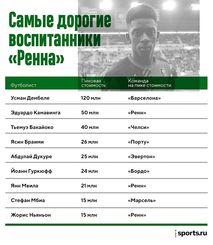 Эталонный пример – Усман Дембеле. «Ренн» разглядел его на одном из матчей в Нормандии (север Франции), но стартовой точкой перехода считает поиск жилья для его семьи в Бретани (северо-запад). Только после такой заботы Дембеле отпустили в «Ренн». А потом клуб продал его «Боруссии» за 15 миллионов евро.