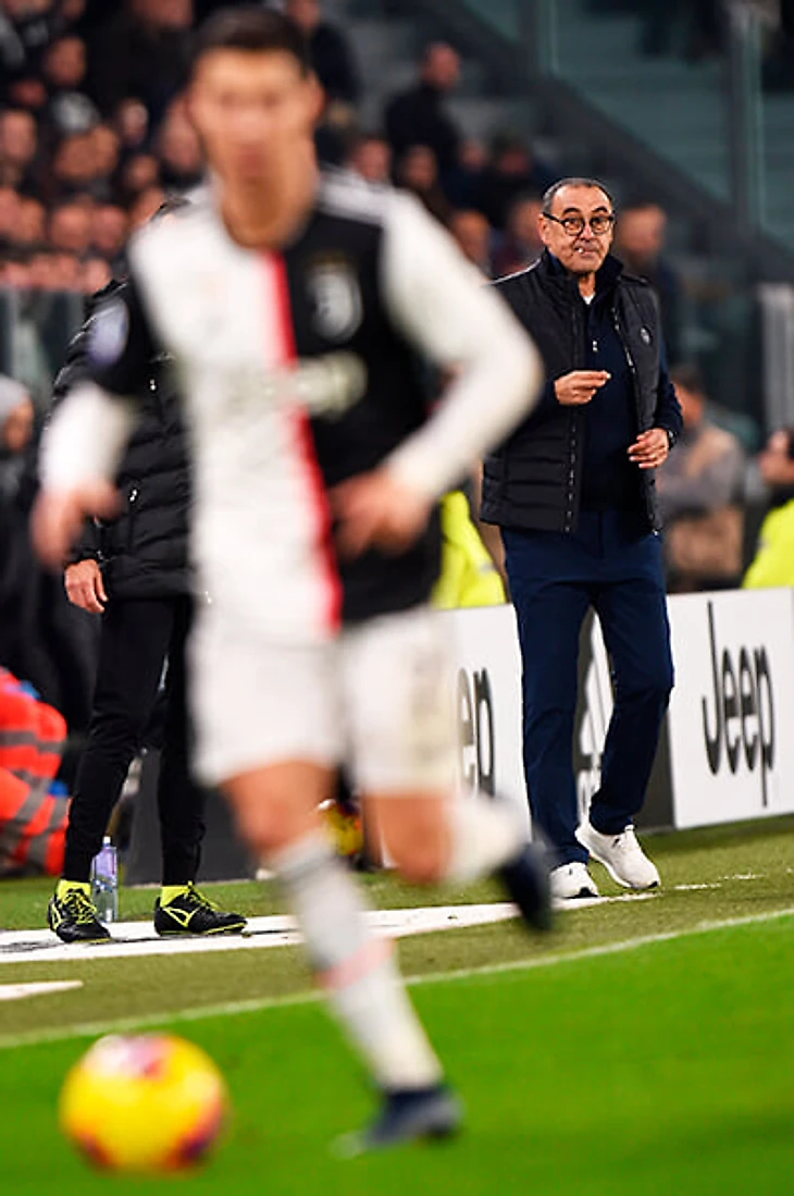 В системе Сарри главной была неизменность структуры. Во время владения игроки придерживались своих зон и на момент потери оказывались в правильных позициях. У соперника не оставалось вариантов безопасного выхода из обороны. Его «Наполи» с огромным отрывом лидировал по прессингу в атакующей трети поля, но в «Юве» этот показатель просел на 29% – с 55 до 38,9 попыток за матч. Роналду подорвал идею Маурицио. Дело было даже не в инертности форварда, а в его свободном движении во время владения. Криштиану оставлял позицию и открывал коридор для соперника.