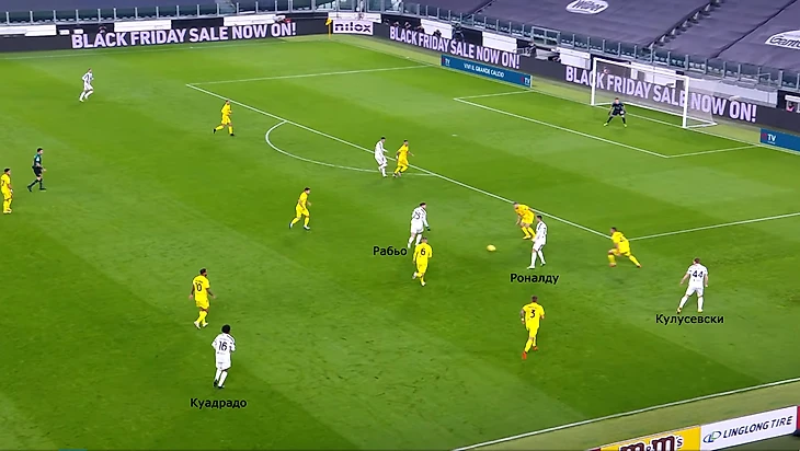 Движение Рона запускает цепочку перемещений, разбивающих чужую защиту. Без португальца «Юве» слабеет – теряется естественный провоцирующий фактор обмена ролями. Структура становится слишком статичной и предсказуемой.