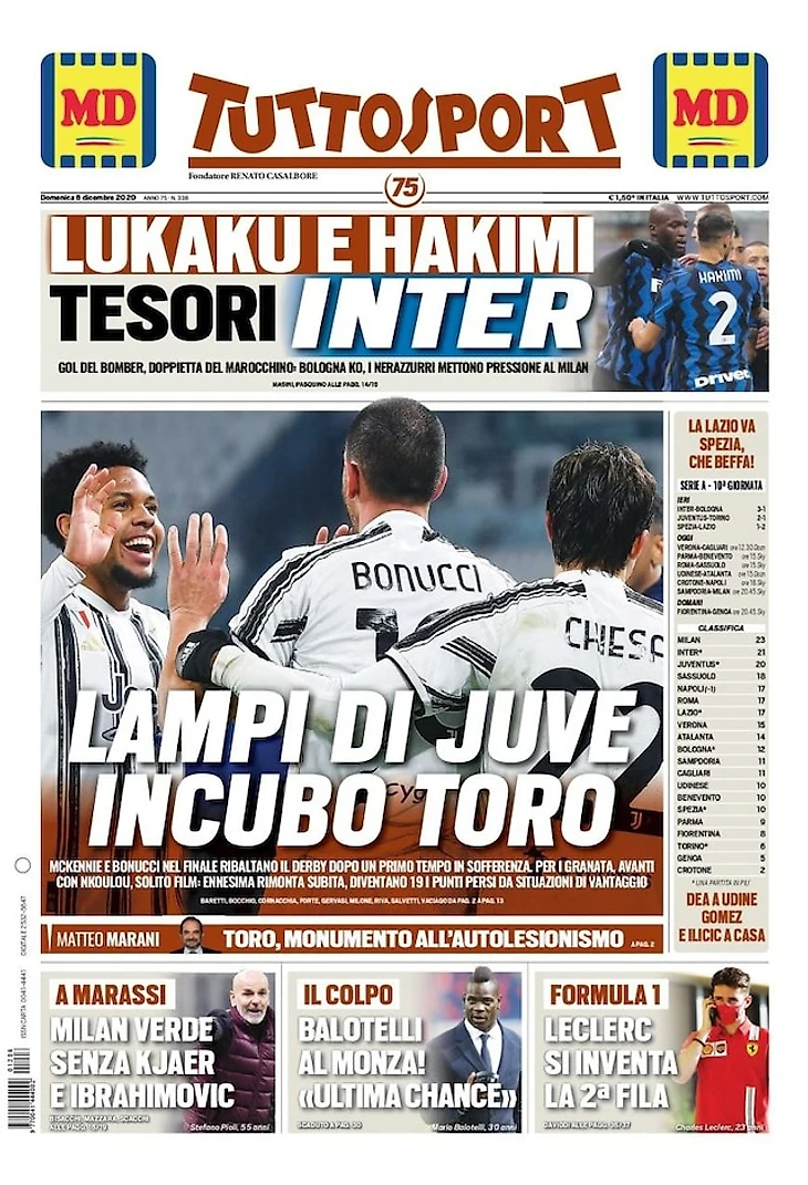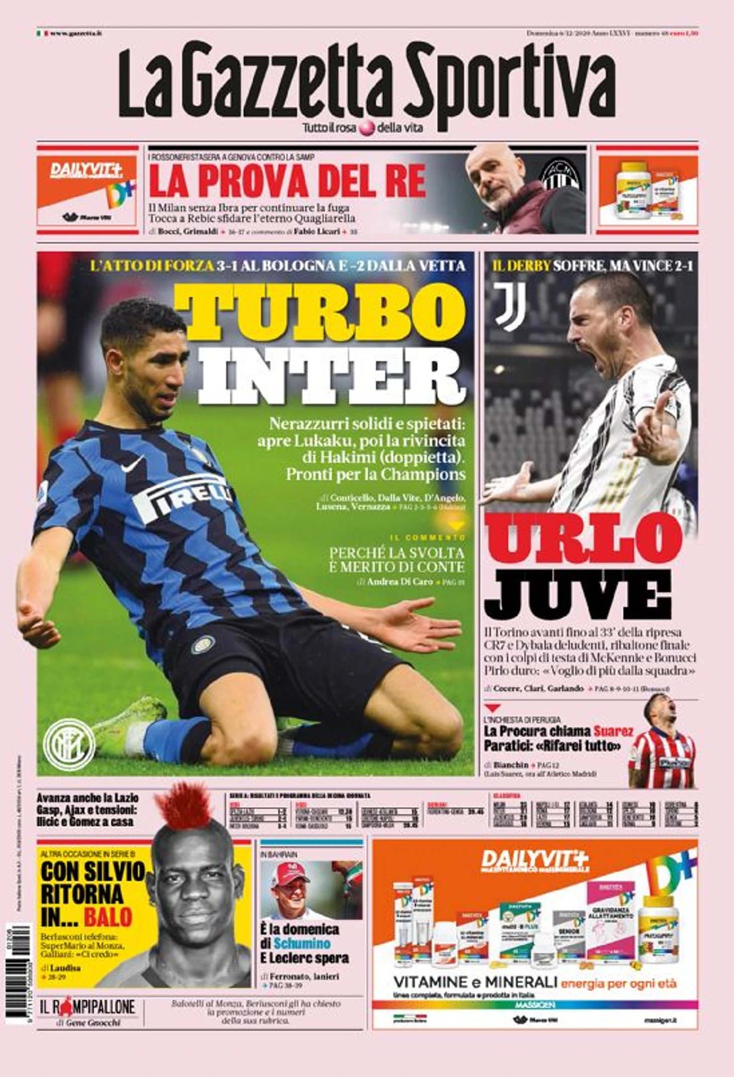Победа «Интера» над «Болоньей», камбэк «Ювентуса» в туринском дерби, а также сегодняшние матчи «Милана», «Ромы» и «Наполи» – в утреннем обзоре заголовков итальянских спортивных изданий в блоге «В гостях у Кальчо».