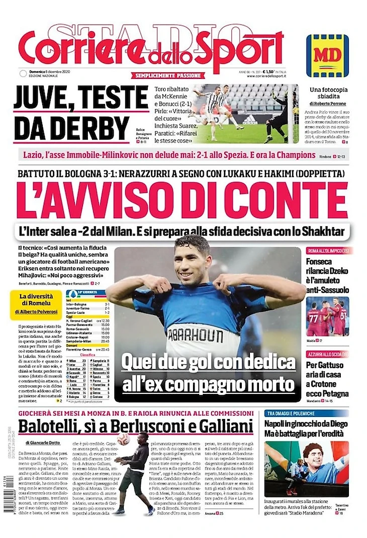 Предупреждение от Конте. Заголовки Gazzetta, TuttoSport и Corriere за 6 декабря