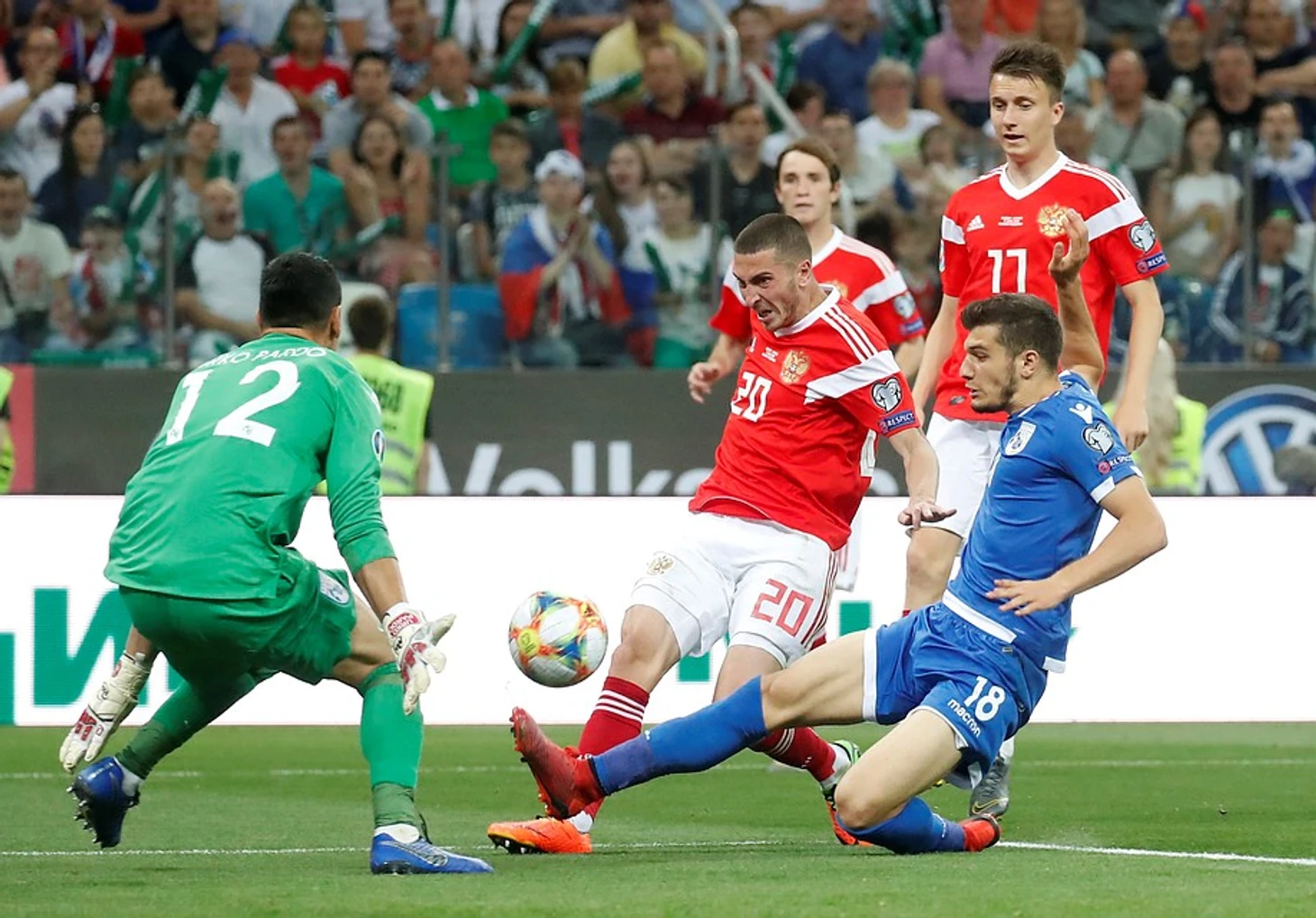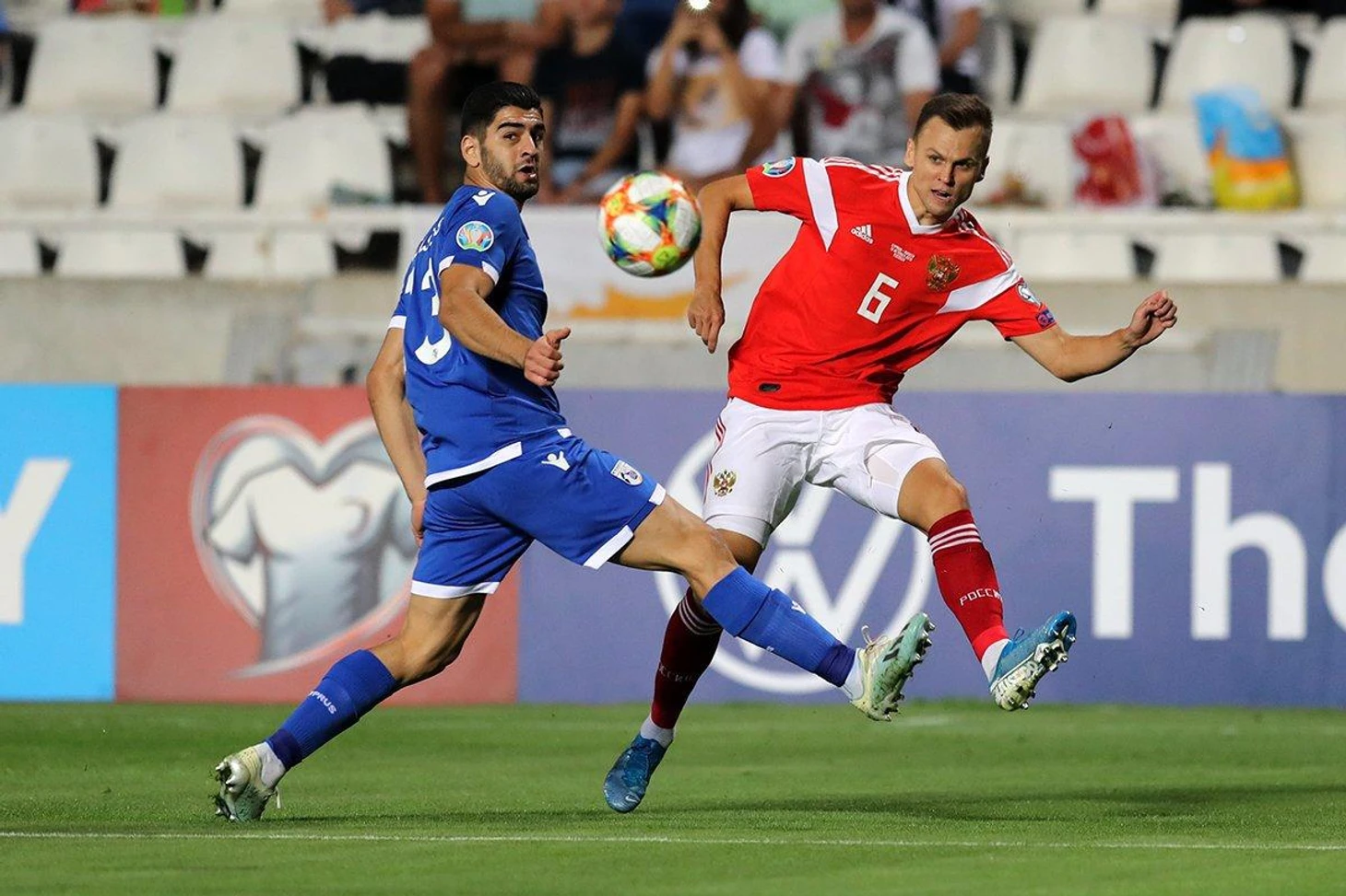 Георгия Джикия в дебюте встречи головой пробил в перекладину. А первый гол в матче случился уже на 10-й минуте. Денис Черышев пробежался по флангу и пробил в ближний угол. Еще через 10 минут Черышев уже выступил в роли ассистента, став автором голевой передачи на Магомеда Оздоева. На 28-й минуте игры за грубый фол был удален защитник хозяев Лайфис. На перерыв команды ушли при счете 2:0 в пользу сборной России. Второй тайм начался так же, как и первый, - попаданием в каркас ворот. Теперь Головин потряс дальним ударом крестовину. На 79-й минуте Дзюба головой замкнул верховую подачу - 3:0. На 88-й минуте Дзюба сделал передачу на Головина и тот забил четвертый мяч. Окончательно развалившийся Кипр пропустил в добавленное время еще раз от Черышева.