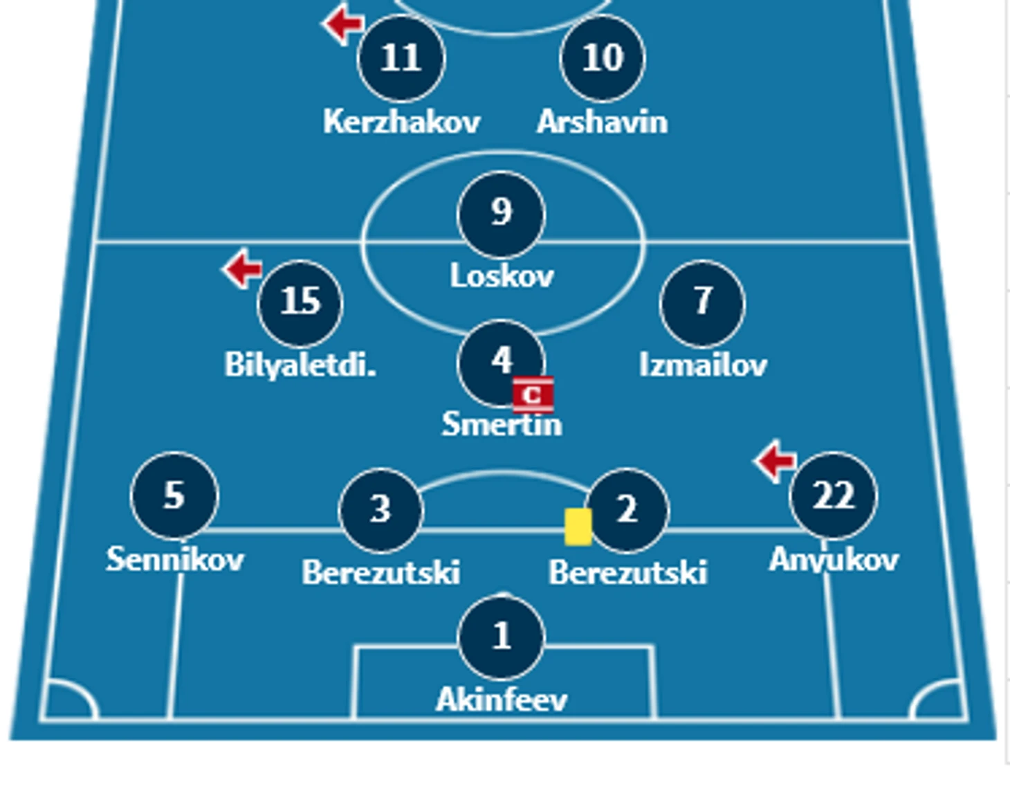 По сравнению с московским матчем, в стартовом составе произошла всего одна замена - вместо Семака вышел Янбаев, но уже после первого тайма был снят с игры.