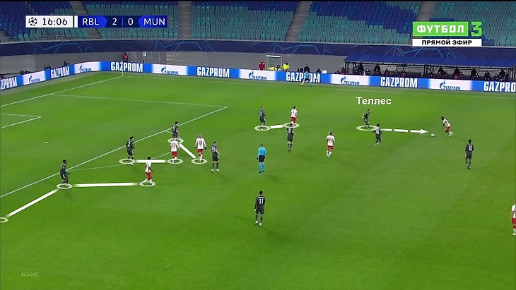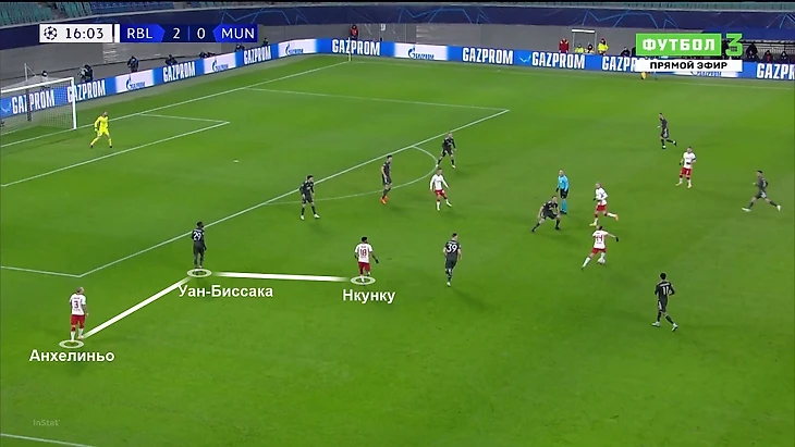 8. Показательно, что необычные роли Забитцера и Нкунку вместе с общей динамичностью схемы «Лейпцига» создавали ситуации, когда команда Нагельсманна перегружала соперника в последней линии.