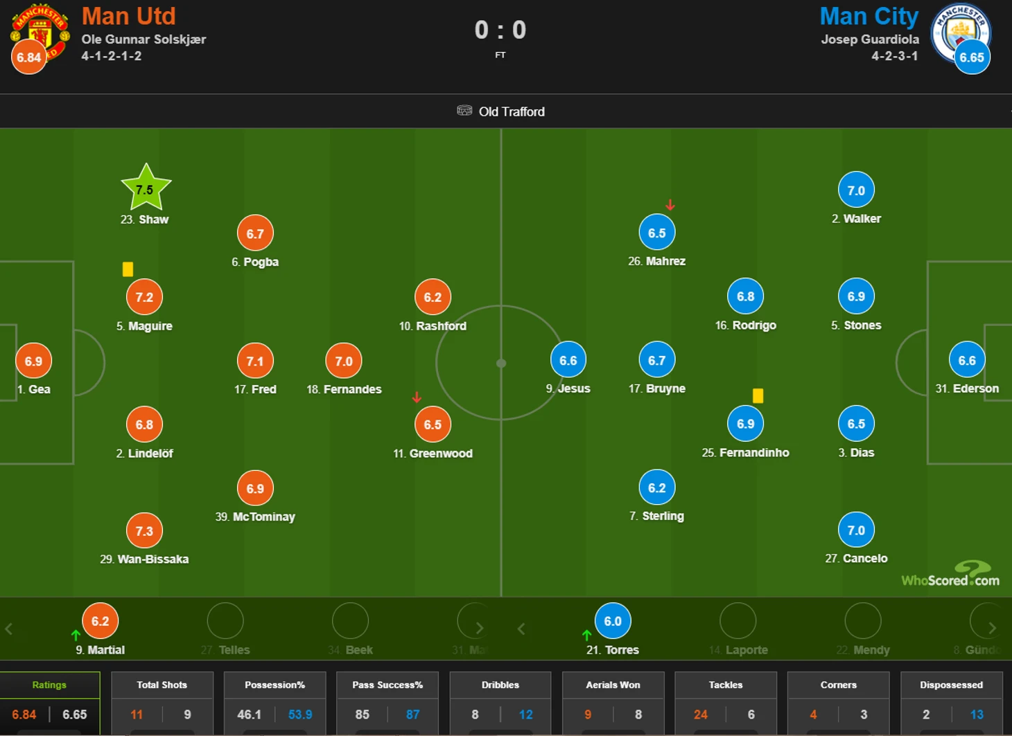 «Юнайтед» и «Сити» голов в центральном матче тура АПЛ не забили. Матч на «Олд Траффорд» получился не зрелищным, а по версии статистического портала WhoScored лучшим стал левый защитник «дьяволов» — Люк Шоу.