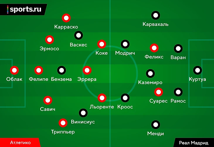 1. Зинедин Зидан внес только одно изменение в состав, который обыграл «Гладбах» – на правый фланг защиты вернулся Дани Карвахаль. Он заменил Родриго, а на позицию правого вингера переместился Лукас Васкес. И Васкес, и Родриго показали отличную игру в ЛЧ – вероятно, решение было обусловлено в первую очередь оборонительной работой, которую способен дать Васкес (левый фланг с Янником Карраско обычно особенно активен у «Атлетико»).