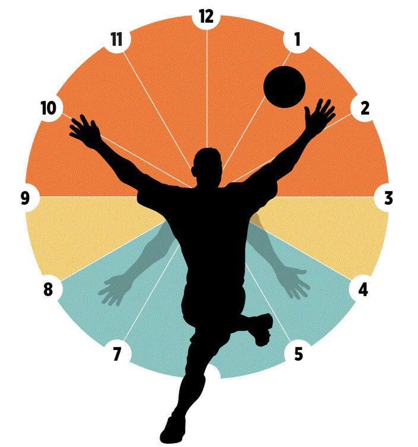 - При этом попадание мяча в руку между 4 и 8 часами не считается нарушением! Конечно, здесь тоже вступает поправка на естественное положение рук.