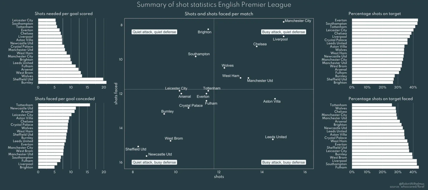Такие команды, как «Тоттенхэм», «Саутгемптон» и «Эвертон», видели, что более 40% их попыток ударов попали в цель.