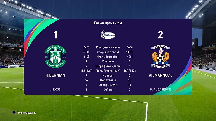 Потрясающий результат, финальный счёт матча 2:2. В реальной встрече «Килмарнок» проиграл 2:0, здесь без вариантов.