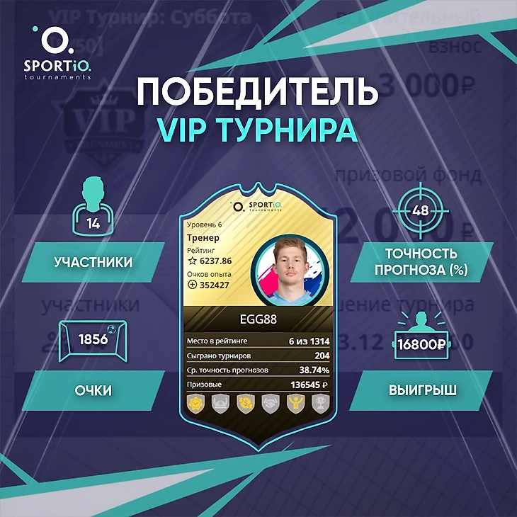 В субботнем «VIP турнире» не было равных EGG88, 16800₽ - его выигрыш!