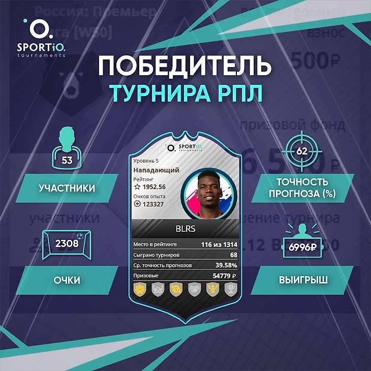 BLRS блеснул в «Турнире РПЛ»! Он выиграл 6996 рублей!