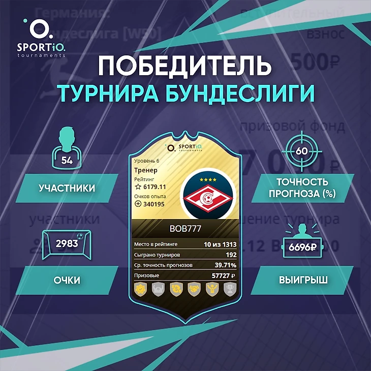 bob777 великолепно проявил себя в «Турнире Бундеслиги». Он положил в кошелек 6696₽!