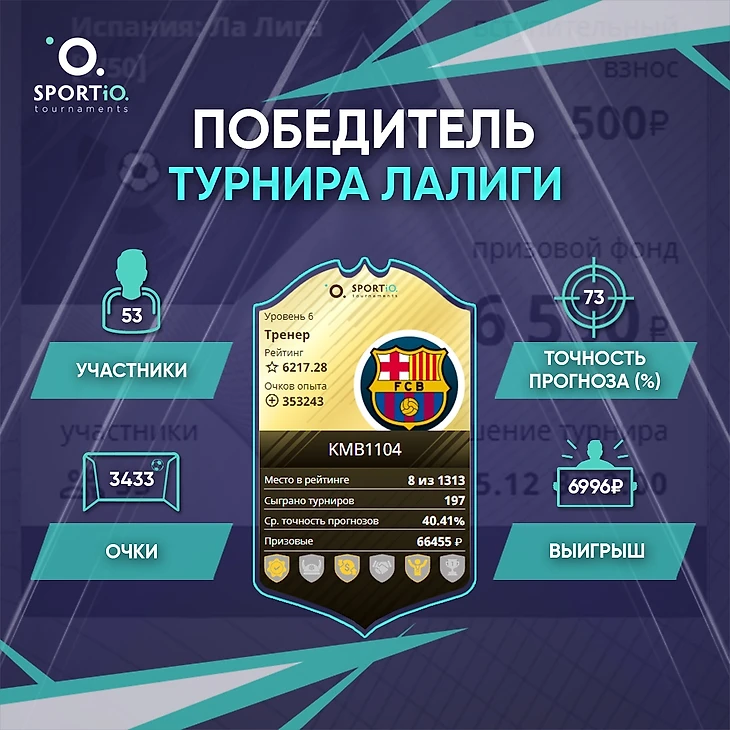KMB1104 был сильнее всех в «Турнире Ла Лиги», его выигрыш равен 6996₽!