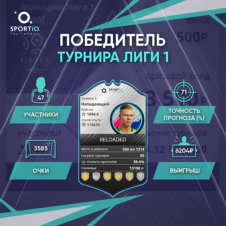 Reloaded лучше всех выступил в «Турнире Лиги 1» он заработал 6204₽ призовых.