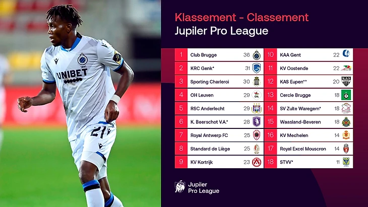 Турнирная таблица чемпионата Бельгии по итогам 18-го тура