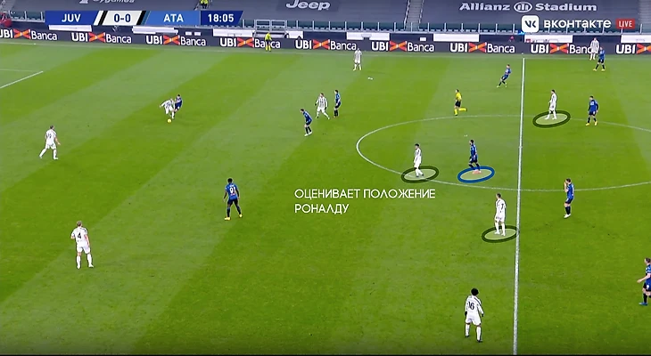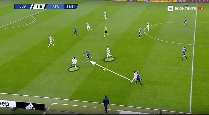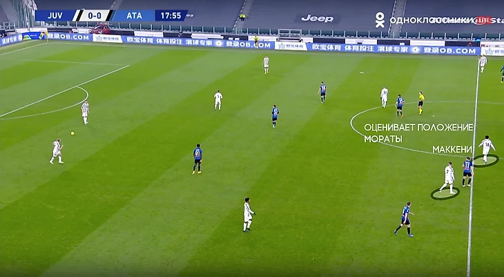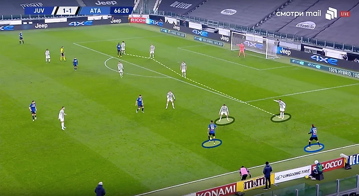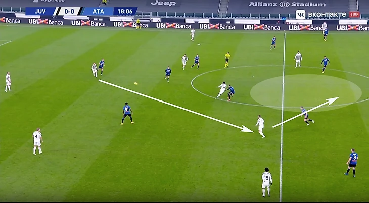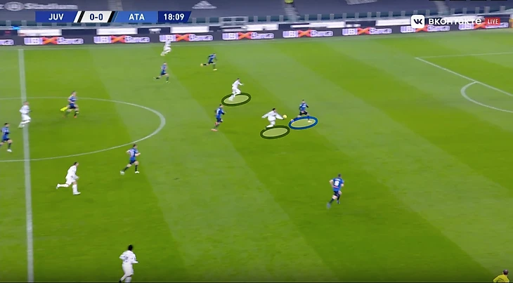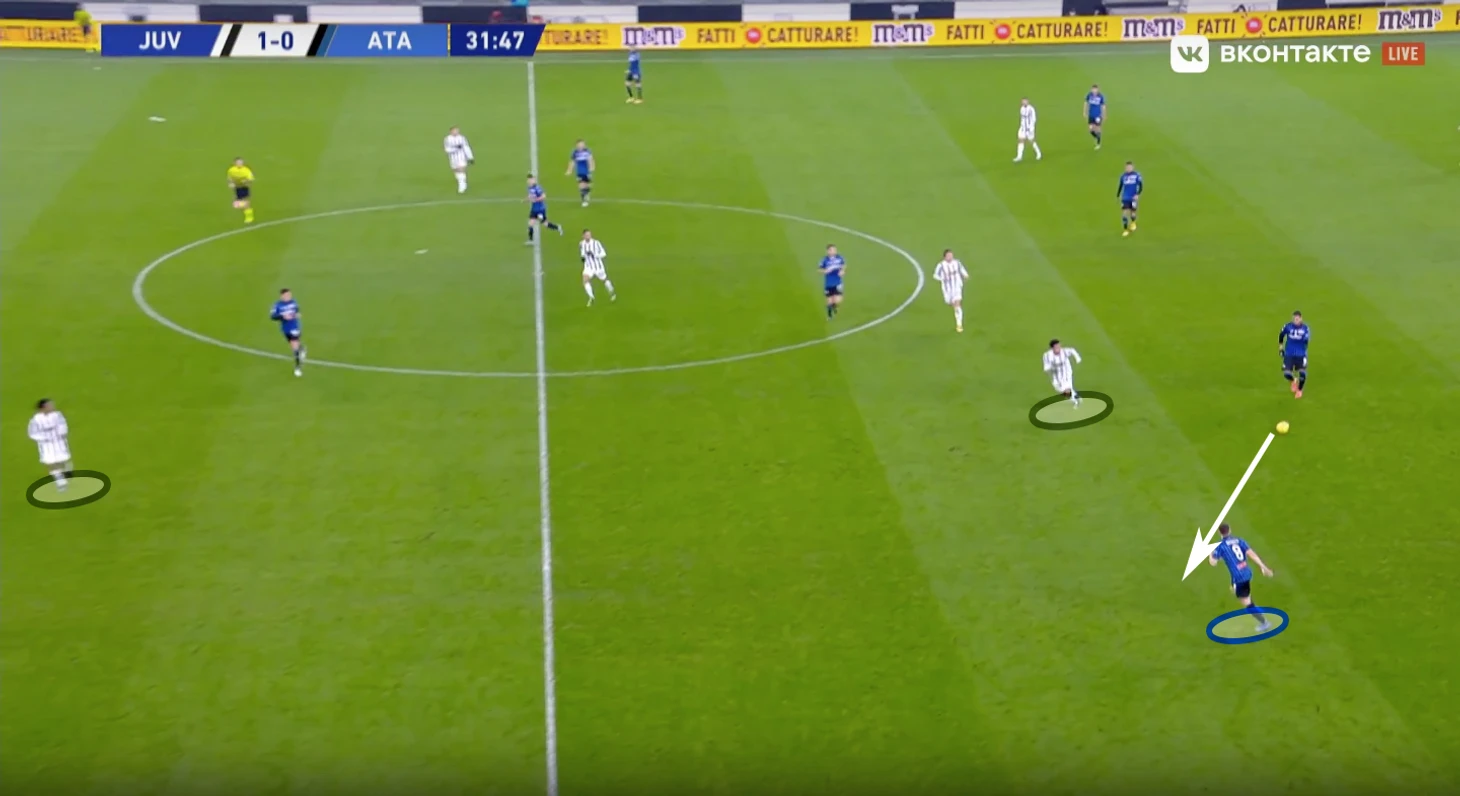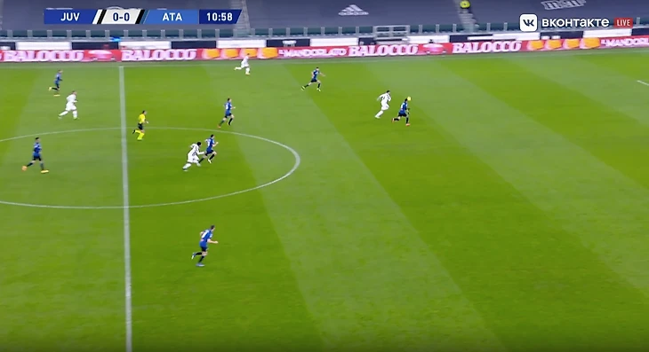 Аталанта же создавала опасность после фланговых розыгрышей. Неприятные эпизоды для Ювентуса случались, когда Гозенс уходил вглубь и Куадрадо не мог выдернуться на него сразу.
