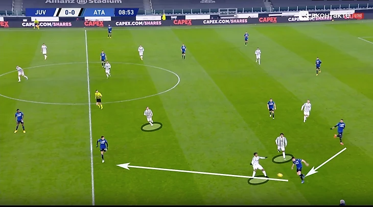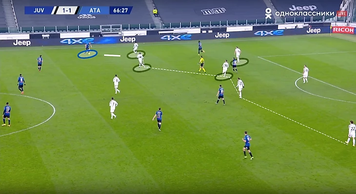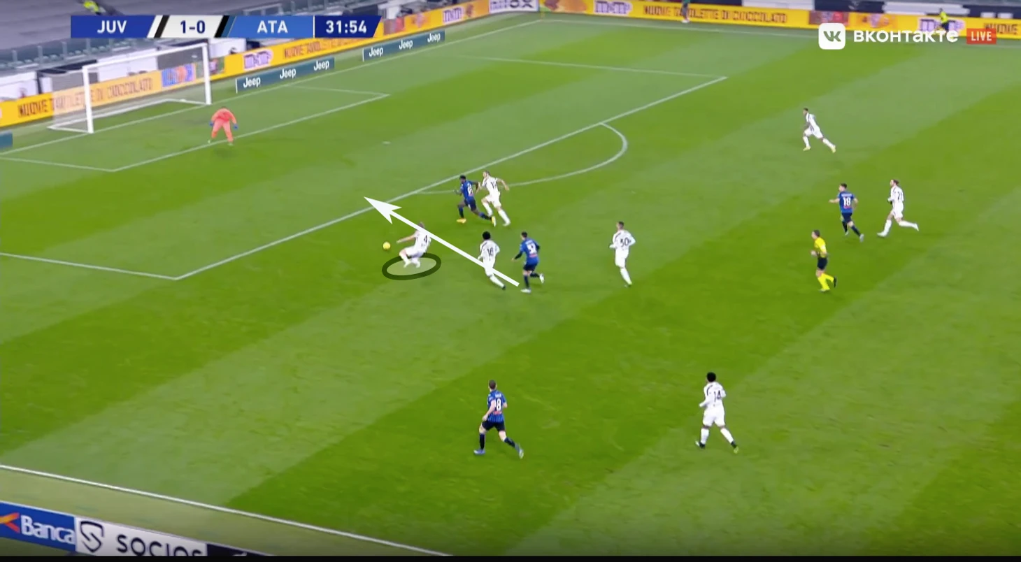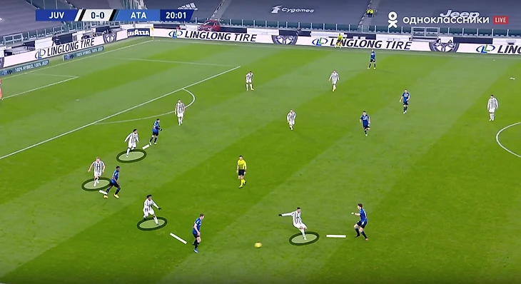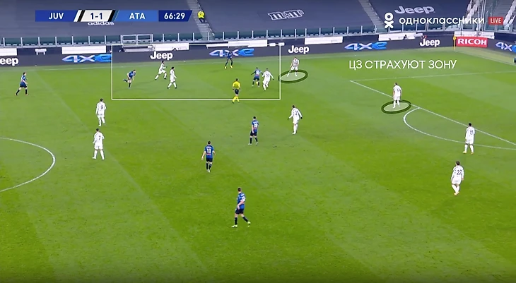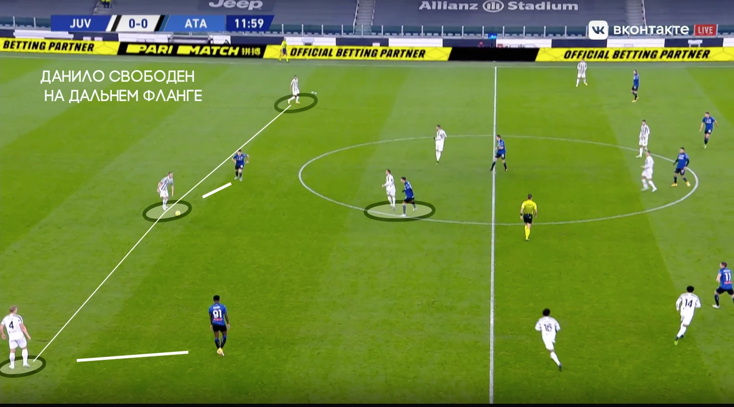 Аталанта же создавала опасность после фланговых розыгрышей. Неприятные эпизоды для Ювентуса случались, когда Гозенс уходил вглубь и Куадрадо не мог выдернуться на него сразу.