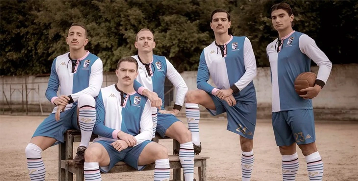 Стильная форма «Палермо» к 120-летию – черно-розовый воротник на старомодной шнуровке. Клуб возродился после банкротства