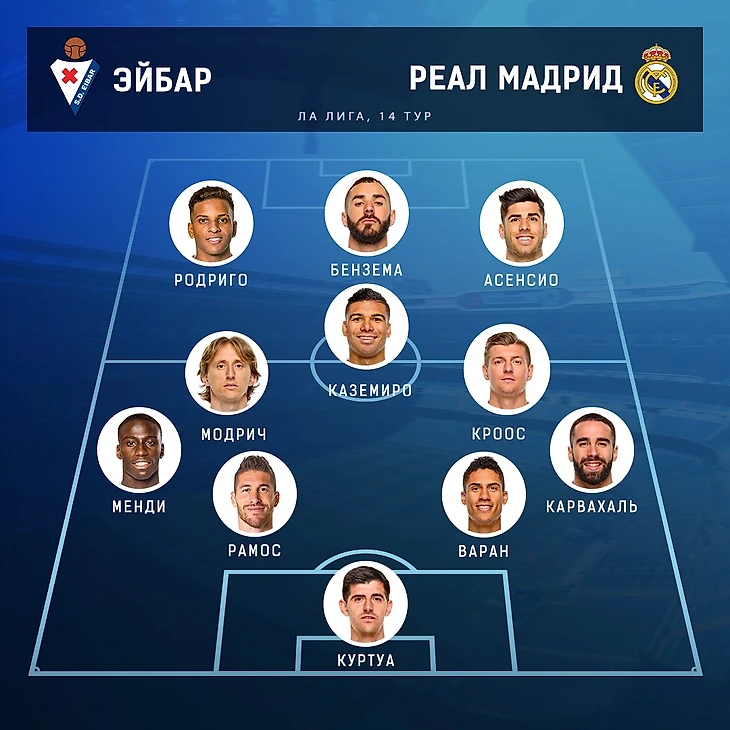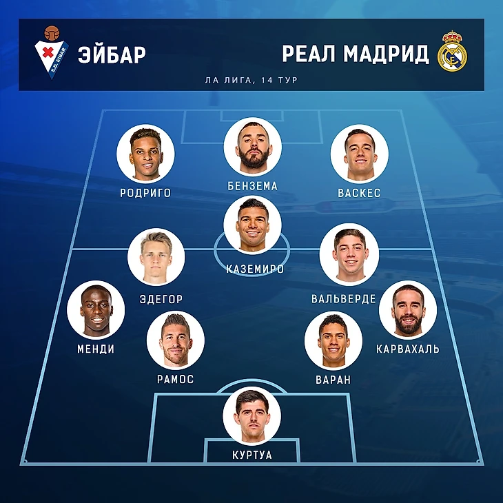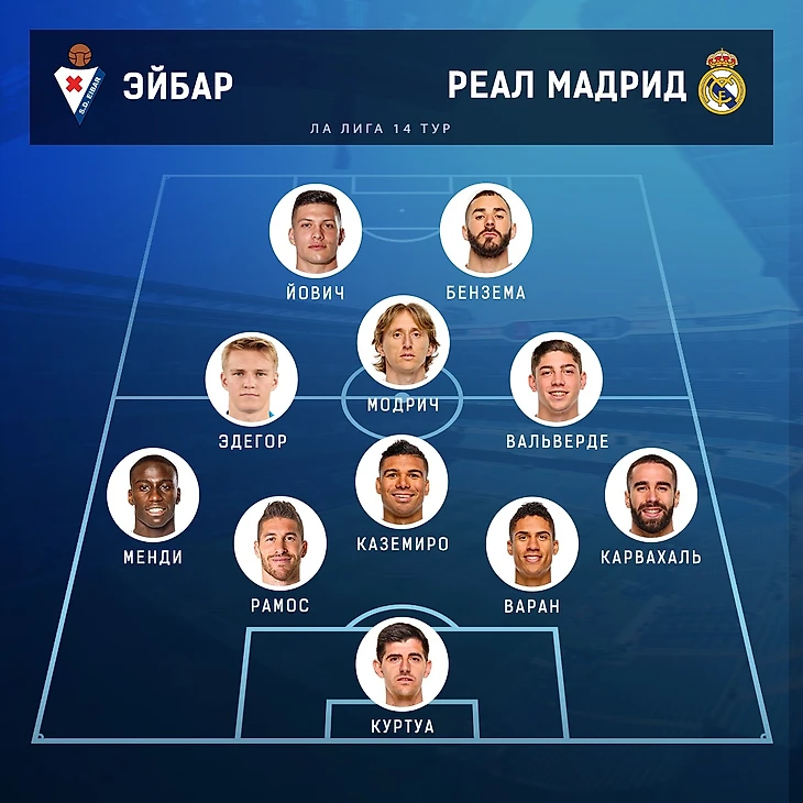 В заявку на матч не попали Винисиус и Иско, зато вернулись Эдегор, Мариано и Йович. Учитывая это, давайте вместе выберем состав на игру.