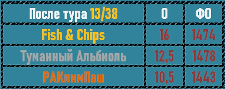 Воспользовавшись осечкой главных конкурентов, Fish&Chips снова укрепляет свои позиции! Всего одно очко уступает лидерам тура и чемпионата РаКлимПаш!