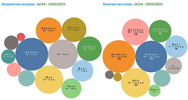 Аналогичная логика по месяцам рождения, ЦСКА здесь тоже очень похоже на общие показатели лиг.
