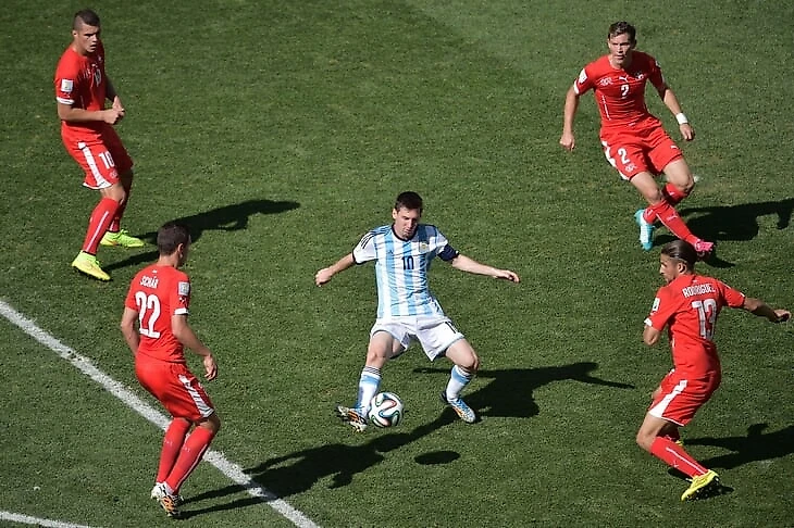 Швейцарцы опасаются приближаться к Месси на ЧМ-2014, но далеко не отпускают.