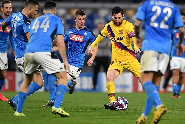 Вокруг Лео 5 игроков «Наполи», но этот удар у него все равно получится.