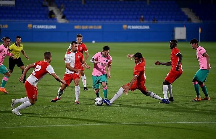 Месси узнают даже в неузнаваемой форме. Лео идет в слалом против «Жироны».