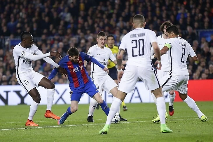 Лучшие силы «ПСЖ» со страхом в глазах встречают Месси на входе в штрафную.