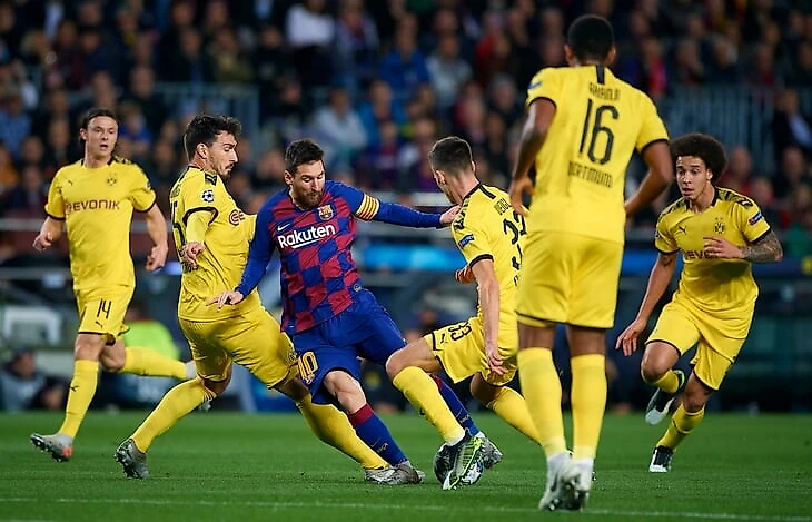 Ноябрь прошлого года. Месси сдерживают Аксель Витцель и его друзья по «Боруссии».