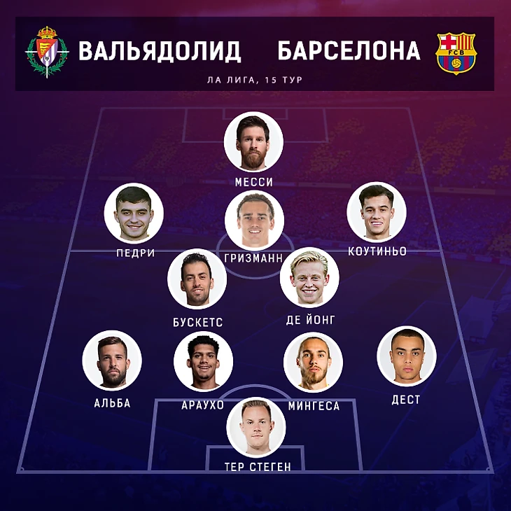 №1: Месси — впереди, Педри и Коутиньо — на флангах, в центре защиты — Мингеса и Араухо.
