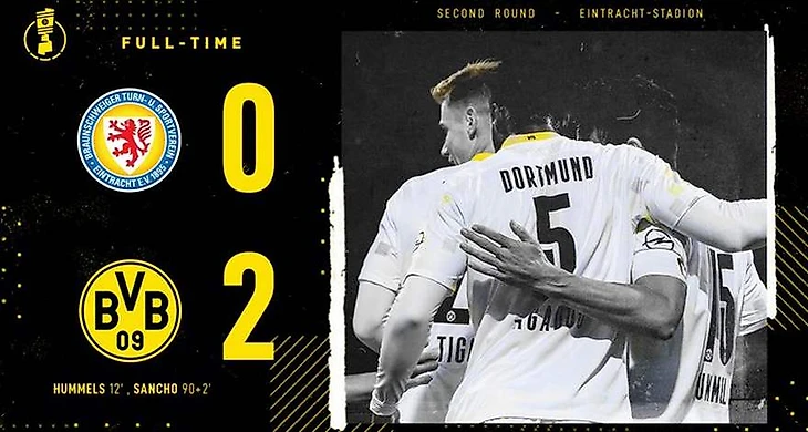Дортмундская «Боруссия» завершила свой игровой 2020-ый год кубковым матчем 2-го раунда в Брауншвейге с местным «Айнтрахтом», который состоялся 22-го декабря.