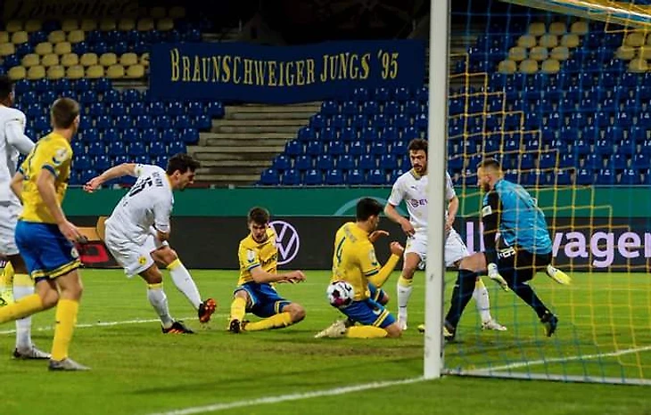 Главный тренер брауншвейгского «Айнтрахта» Даниэль Майер выставил максимально оборонительный состав: Ясмин Фейзич, Лассе Шлюттер, Доминик Выдра, Яннис Николау, Данило Вибе, Патрик Каммербауэр, Яссин Бен-Балла, Фабио Кауфманн, Мартин Кобылянски, Марсель Бэр и Сулейман Абуллахи.