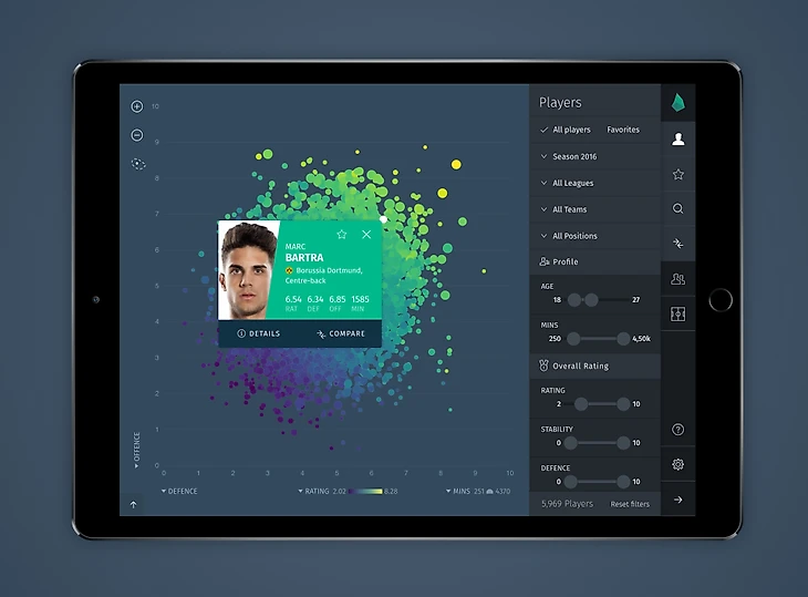 Но 48-летний теперь уже специалист помимо работы в клубах участвует в стартапе, от которого он не отказался, несмотря на отсутствие одобрения со стороны начальства. После корректировки модели он попытался заинтересовать массовым применением своей программы различные клубы в Германии и за рубежом. Никто не хотел. Он извлек один из важных уроков: такие программы должны быть визуально привлекательными. После того, как он нанял молодого берлинского специалиста по визуализации данных, который создал для него удобный интерфейс и даже получил за это награды среди веб-дизайнеров, предложения посыпались.