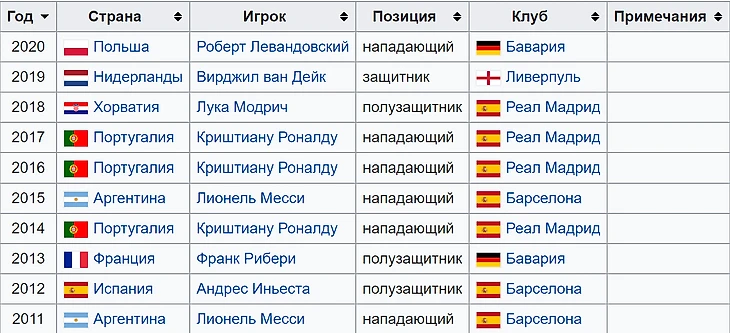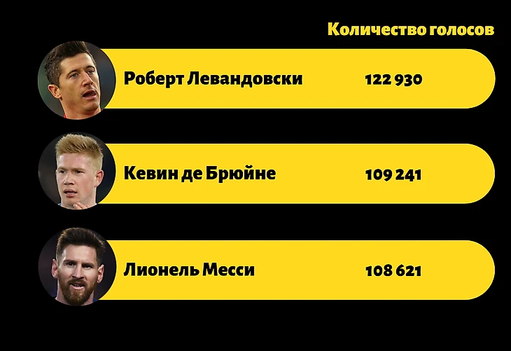 Безусловно, самая важная и ожидаемая награда ФИФА. Лучшего из лучших выбирают известные и авторитетные эксперты, тренеры и капитаны лучших клубов Европы, огромная масса людей, которые зачастую выбирают игрока не по его выступлениям в сезоне, а лишь по тому, что это их кумир или соотечественник. Возможно, что Месси и Роналду вышли в финальный раунд как раз за счет большого количества таких фанатов. Любой игрок хотел бы получить данный трофей. Как мы знаем в этом году приз забрал Роберт Левандовский, который провел сумасшедший сезон.