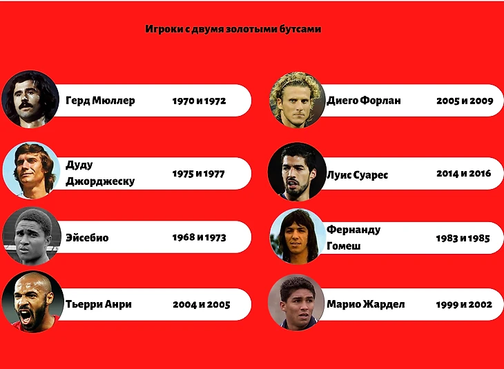 Лионель Месси - рекордсмен в получении "золотых бутс". Игрок "Барселоны" 6 раз забивал больше всех в Европе. Было это в 2010, 2012, 2013, 2017, 2018, 2019. Следом по количеству завоеванных наград идет извечный соперник Лео: у Криштиану Роналду таких четыре. Двумя бутсами могут похвастаться 8 футболистов: