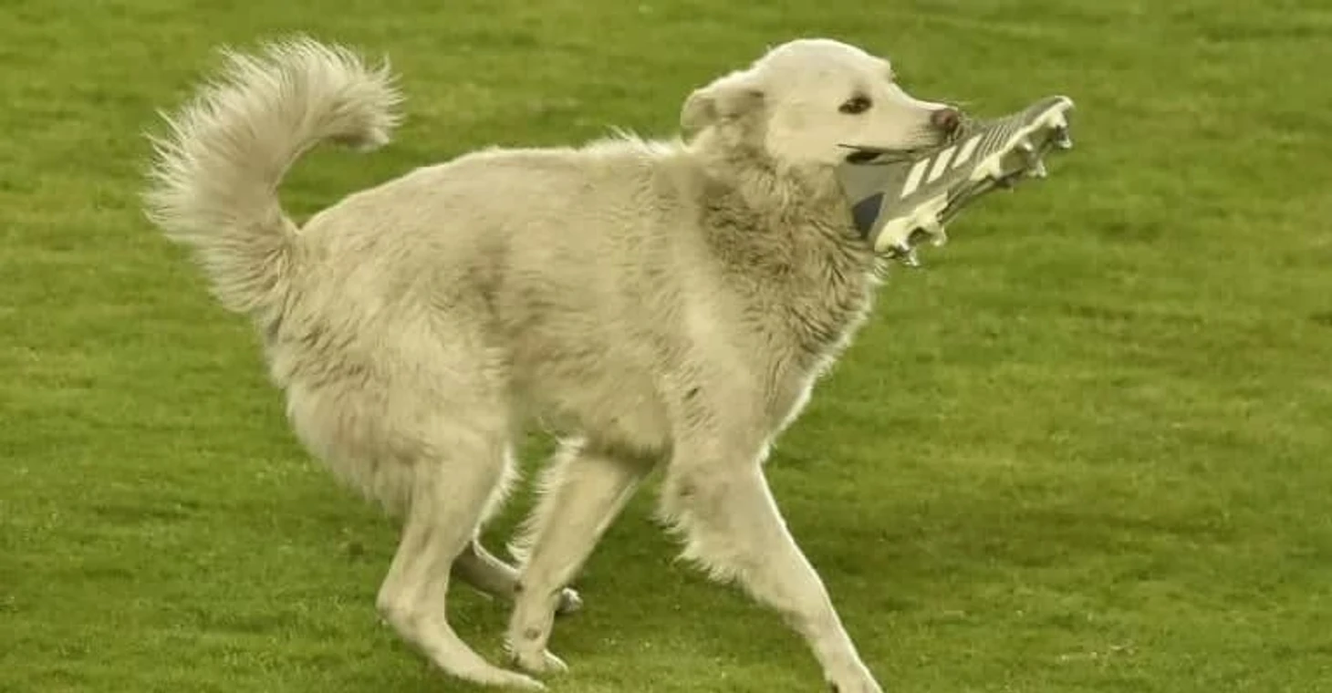 Во время матча на поле выбежал пес – с бутсой в зубах! Боливийская газета Página Siete рассказала, что Качито (такое прозвище дали животному в интернете) стащил обувь у запасного вратаря «Насьоналя».