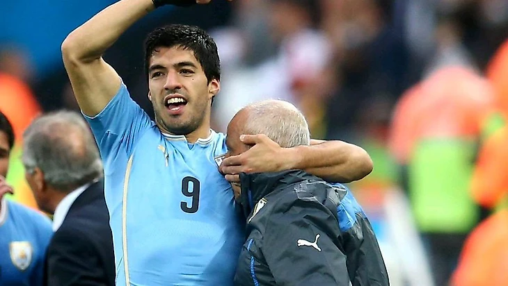Чемпионат Мира 2014 – ещё один международный турнир, в котором Луис Суарес умудрился отличиться ещё одной “киношной” историей. Получив травму в рамках последнего тура АПЛ, было неизвестно, успеет ли игрок восстановиться до начала турнира. Суарес, после персональных занятий с физиотерапевтом Вальтером Феррейрой, который отложил курс химиотерапии, для того чтобы подготовить главную звезду сборной Уругвая к матчам национальной команды, всё-таки сумел сыграть на том турнире, пропустив только первый матч. После того, как Луис первым же ударом в створ распечатал ворота Джо Харта, он побежал к скамейке запасных, обнял, и несколько раз указал пальцем на физиотерапевта, который и подарил Луису этот Чемпионат Мира. Очень трогательная сцена, думаю в один прекрасный день сценаристы будут биться за право экранизировать сценарий карьеры Суареса, благо материала самого разного характера в этой истории большое множество, и она всё ещё продолжается… Но как мы уже могли успеть привыкнуть, Луис Суарес не может просто остаться любимцем болельщиков, после какого-либо сильного персонального перфоманса, и в этот раз, в следующем важнейшем матче “зубастик” кусает за плечо защитника сборной Италии Джорджо Кьеллини, на сей раз уже последний (надеемся). Эпизод снова ускользнул от глаз арбитров матча, и сборная Уругвая, благодаря голу Диего Година, всё же смогла пройти в плей-офф, но по окончанию поединка Суарес получает 4-х месячное отстранение от футбола, не имея возможности играть на любом официальном уровне. Это одно из самых суровых наказаний, когда-либо применяемых к футболистам, вынесено оно было скорее за рецидив, ещё и на таком крупном футбольном празднике. Справедливо или нет – каждый уже решает сам для себя.