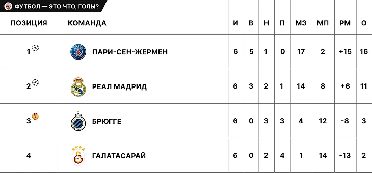 На этот раз в Лиге Чемпионов группа попроще: 2 явных фаворита, которые разыграют первое место - «ПСЖ» и «Реал», и две команды, которые будут бороться за место в Лиге Европы - «Брюгге» и «Галатасарай». И снова первое место.