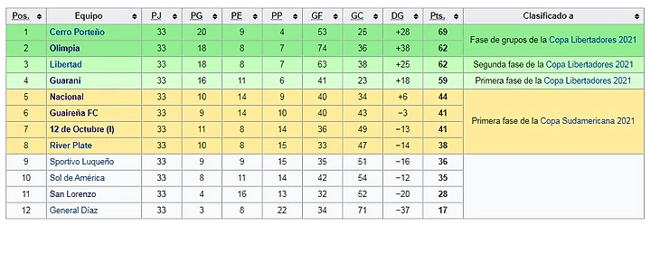 Теперь оба неудачника года сражаются с APF за право остаться в высшем дивизионе. Их поддерживают практически все остальные участники Примеры, за исключением отмалчивающейся топ-4 ("Олимпия", "Серро", "Гуарани", "Либертад"). Аргументы лежат на поверхности - чемпионаты низших парагвайских лиг изначально были отменены из-за пандемии, Клаусура была по тем же причинам усечена до 11 туров, а для определения чемпиона по аналогии с чемпионатом Мексики ввели плей-офф. Но парагвайские футбольные чиновники не скрывают, что хотят видеть не более десяти команд в высшей лиге, по крайней мере в новом сезоне, и предлагают в качестве компромисса прямое повышение для трёх участников Интермедии-2021 и стыкового поединка четвёртой команды второй лиги с предпоследним коллективом Примеры, почти как в Германии или России. До сих пор большинство организационных решений (например, по лимиту на легионеров) принималось голосованием представителей клубов, и развязки этой истории, видимо, придётся ждать до того момента, когда будет сформирован календарь сезона-2021.