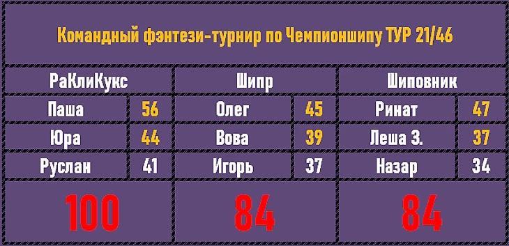 Круглый результат РАКлиКукса позволил команде занять первое место в туре №21. Преследователи поделили очко надвое.