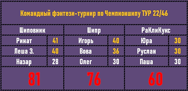 Вы будете смеяться, но успешнее всех на данном турнирном отрезке проявила себя команда Шиповник. У ребят 2,5 балла, но это все равно еще очень далеко даже до второго места. Хотя, посмотрим, турнир всего лишь пересекает экватор.
