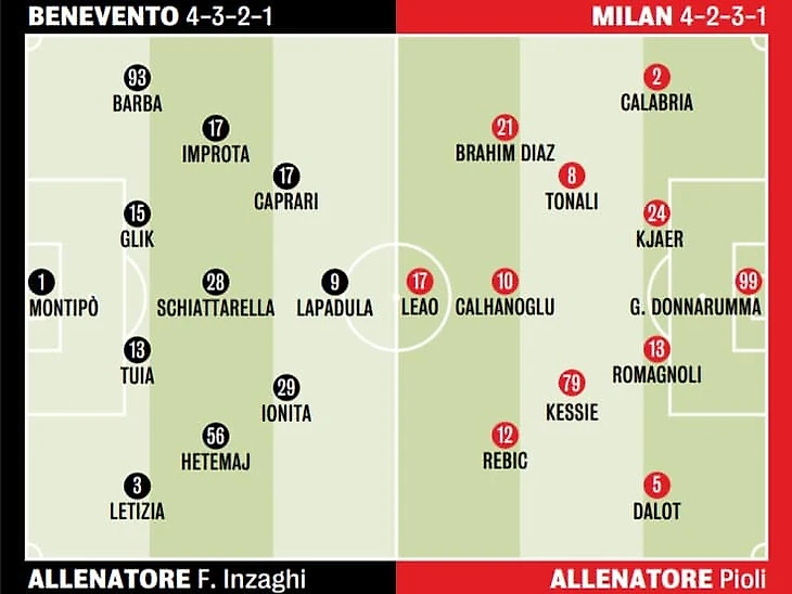Так выглядит прогноз составов на матч «Беневенто» и «Милана» по версии издания La Gazzetta dello Sport: