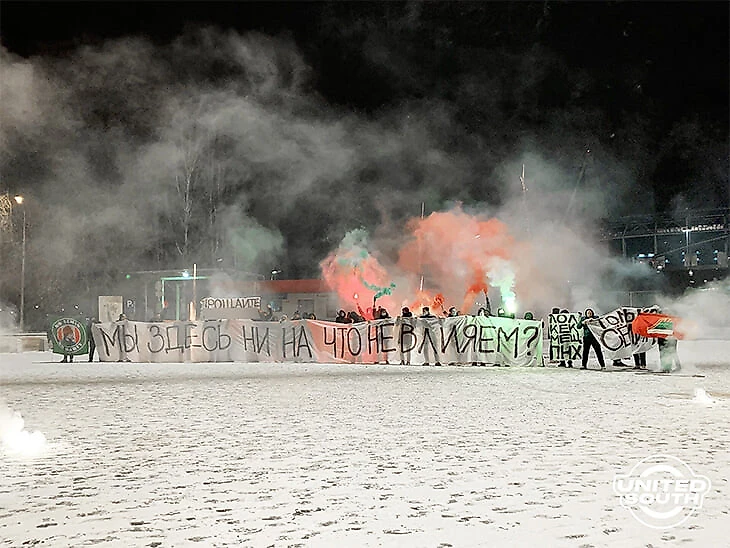 50. Фанаты «Локо» проводили Кикнадзе акцией у стадиона: развернули баннер «Мы здесь ни на что не влияем?» и запустили фейерверк.