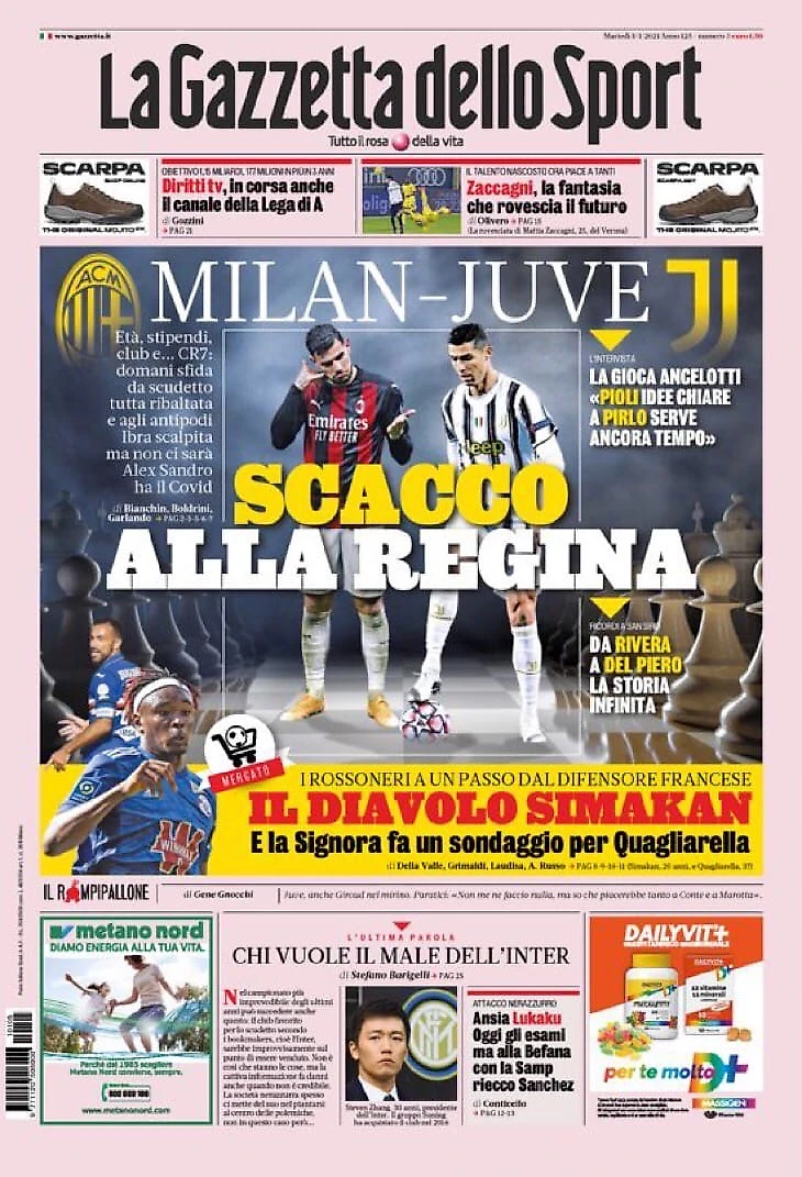 Шах для королевы. Заголовки Gazzetta, TuttoSport и Corriere за 5 января