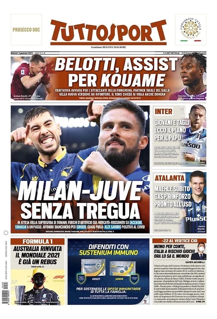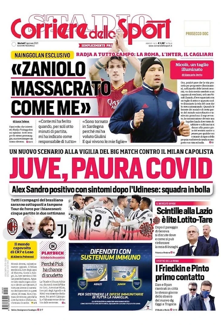 Предстоящий матч «Милан» и «Ювентуса» в схватке на поле и на трансферном рынке, а также опасность заражения в «Юве» – в утреннем обзоре заголовков итальянских спортивных изданий в блоге «В гостях у Кальчо».